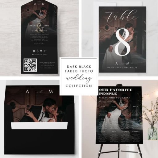 Mörk Faded Photo & Monogram Elegant Black Bröllop Bordsnummer