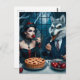 AI-genererad konst av vacker vuxen Snö som äter kirttpaj med vargen i en sago-kollision där antika sagor kolliderar