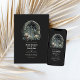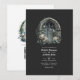 Gotisk bröllopsinbjudan med slottfönster som kan anpassas till ditt evenemang. QR-koden på baksidan leder till din bröllopssida där folk kan lära sig mer och svara.