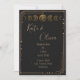 Den vackra bröllopsinbjudan mellan stjärnor Black & Guld har en svart bakgrund mot elegant gyllene illustrationer och gyllene måne-faser. De här inbjudningarna för med sig en elegant och mörk som vrider till din bröllop-svit samtidigt som de tillför lite magi och stollig.
