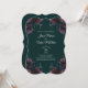 Elegant mörk Forest grönt blommigt med bröllopsinbjudan till maron och mauve-blommor är härligt med maron och rosa ros och grönt på en mörk grönt av skogar för ett sött bröllop utseende. Blommorna är hörnen för ett elegant, modernt och sofistikerat utseende.