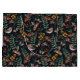 Den här presentsäcken har mörk blått bakgrunder på fåglar, fåglar, fjärilar, mjädrar, ferner, svampar och blommor.