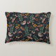 I dekorativ kudde finns hummingfåglar, fåglar, fjärilar, mullvadar, räder, svampar och blommor på mörk blått bakgrund.