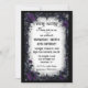 En ornat, svart ram omgiven av svarta och vita blommor och djup lila ro i hörnen gör denna födelsedagsfest inbjudan-perfekt för det gotiska firande! Fungerar bra för en vuxen eller tonåring.