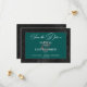 Gå in i en värld av elegans i mörken med vårt fängslande gotiska bröllop spara datum-kort. Inställd mot en bedövande svart-på-svarta-satäng vintage blommigt tapet, utstrålar denna inbjudan en luft av mystik och tidlös charm. Textrutans bakgrund i rikens grönt för teal lägger till en liten bit färg. Med vintage typsnitt och en åldras som ser ut att vara sofistikerad är denna inbjudan en perfekt som blandar gammal allure och contemporaryns lockelse. Förstå det förflutnas och inbjudan era gäster att bevittna ett kärlek som överskrider tiden med den här fängslande gotiska bröllopsinbjudan. Skapat av Farmhouse Press.