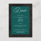 Gå in i en värld av elegans i mörken med vårt fängslande, gotiska bröllop-detaljkort. Inställd mot en bedövande svart-på-svarta-satäng vintage blommigt tapet, utstrålar denna inbjudan en luft av mystik och tidlös charm. Textrutans bakgrund i rikens grönt för teal lägger till en liten bit färg. Med vintage typsnitt och en åldras som utstrålar sofistikering är den här utformningen en perfekt som blandar gamla allure och contemporary. Förstå det förflutna och inbjudan att era gäster bevittnar ett kärlek som överskrider tiden med den här fängslande gotiska bröllop-designen. Skapat av Farmhouse Press.