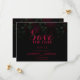 Få ut ord med den här ljusa och färgstarka Mörken Gothic Fuchsia Blommigt Bröllop spara datum perfekt för design för din viktigaste händelse med blommor med fallande löv som tonas ner i svart bakgrund.