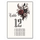 En tidlös buff-beige-bakgrund sätter tonen, det häpnadsväckande mörken rosewood och det svarta bukett med rosor med en svart sitta-topp - perfektens utformning för att starta ditt gotiska bröllopsmottagande - Textaccenter i gamla engelska ordspråket gotiic stil calligraphy Design av ©Whimsical Artwork™