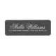 Elegant returetiketter med ditt namn i ett elegant calligraphy-skript och adress nedan på en tryckt mörk grått linen-bakgrund.