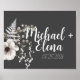 Mörk Grått & vit Blommigt Bröllop-väggutskrift Poster