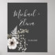 Mörk Grått & White Blommigt Bröllop par Poster