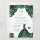 Den här eleganten och det glamorösa födelsedagsfest inbjudan har en vacker prinsessa med brunetthår i en mörk grönt boll-gryning. Texten kombinerar handskript och modernt sans serif typsnitt för ett klassligt och sofistikerat utseende. Blommigten, fjärilen och silver-konetti skapar perfekten blandning av rustika och chic. Grafik efter www.etsy.com/uk/shop/SunflowerDayLove