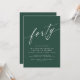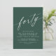 Modern-stil 40-årsinbjudningar med rubriken "40" i ett skriptteckensnitt. Vitt teckensnitt på mörk grönt bakgrund.