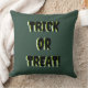 Mörk grönt färg anpassade dekorativ kudde med titeln brev BUS ELLER GODIS Titel i tre färger Black på Gult Grönt på Färger speciell för Halloween dekoration anpassade Det är ett använda hemdekorobjekt för regelbunden daglig dekorativ kudde som är en idealisk gåva för familjevänner och släktingar smidigt och bekvämt färger som finns i många