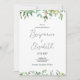 Vattenskärtvit, grönt av skog och lövtäckesgrönt bröllop. Den här botaniska handdragna inbjudan till blommigt löv är perfekt för alla klassofistikerade och sofistikerade snyggtar eller någon annan. Den här designen är perfekt för en händelse i trendig och snyggt party. Anpassa den här designen med egen information om meddelande och personlig. Alla designer skrivs ut.