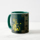 Mörk grönt och halvvita Färg Mugg-bakgrund med Golden Design på Gräns-området och Mitten Glowing Flower Mönster som ser mycket magisk ut och attraktiv ut.