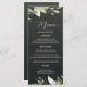 Lägg till bord med Bröllop-menyn i Mörk grönt Modern Grey Löv. Designad på överlägset mörk grönt kort lagrar utstrålar den elegans med ett modernt löv mönster, vilket ger ett gott naturinspirerat estetiskt intag till matsalen. Dess rena, moderna typografi visningar på ett vackert sätt dina omsorgsfullt utvalda diskar, vilket förbättrar dina gästers matupplevelser. Det här sofistikerade menykortet är ett underbart tillägg till din bröllop-dekoration, som sömlöst binder till orustiska, bohemiska eller moderna bröllop-teman och lägger till en fräschande grej till din speciella dag.