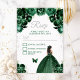 Den här eleganten och den glamorösa OSA kort har en vacker prinsessa med mörk hud i en mörk grönt boll-gryna. Texten kombinerar handskript och modernt sans serif typsnitt för ett klassligt och sofistikerat utseende. Blommigten, fjärilen och silver-konetti skapar perfekten blandning av rustika och chic. Perfekt för en sweet sixteen eller födelsedagsfest. Grafik efter www.etsy.com/uk/shop/SunflowerDayLove