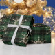 MÖRK GRÖNT PLAID MÖNSTER MED GULD-ORNADER PRESENTPAPPER