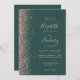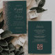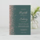 Den lämnat kant i eleganten är en modern bröllopsinbjudan som har en ro-guld faux-design för glitter. Anpassadet kombinerar handskrift, rityta och kursivt typsnitt i blek ro-färgad med bakgrunden till grönten i mörken. Den omvända sidan ger plats för bröllop-information på en solid mörk grönt bakgrund, tillsammans med en QR-kodgäst som kan söka på din webbplats och OSA, vilket sparar kostnaderna för utskrift och utskick av separat OSA kort.