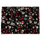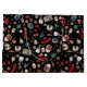 Hygge christmas sömlös mönster med söta och mysiga julföremål på svart bakgrund. mörk julafton som är papper med hand plockade gräs träd, tomtens strumpor, halvhanddukar, helgdag ljus, kakor, presenter, polkagrisar, kanel, klöver, hett, orange, chokladmaterier, äpplen, helgdag. vintermönster upprepar .