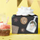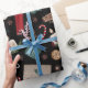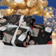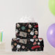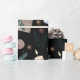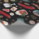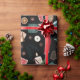 Hygge christmas sömlös mönster med söta och mysiga julföremål på svart bakgrund. mörk julafton som är papper med hand plockade gräs träd, tomtens strumpor, halvhanddukar, helgdag ljus, kakor, presenter, polkagrisar, kanel, klöver, hett, orange, chokladmaterier, äpplen, helgdag. vintermönster upprepar .