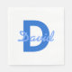 Mörk & Light Blue White Editable Namn Monogram Pappersservett