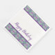 Pappra middagsservetter med dekorativt blommönster i lila, mauve, grönt och kalk, anpassa texten från grattis på födelsedagen till kostym vid varje särskilt tillfälle, text kan också tas bort för vardaglig använda. Flera olika storlekar av blöjor att välja mellan.