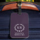 Lila och vit bagagemärke av modern, professionell och minimalistisk mörk, perfekt för alla jetmaskiner. Den eleganta designen har två monogram brev som omges av ett klassiskt lager med hjärta, ge det till ett sofistikerat utseende. Anpassa den med ditt eget monogram och anpassade fullt namn-mall för enkel identifiering, så att väskan alltid är lätt identifierbar vid bagageanspråket. Det här bagagetaggen är designat som tillbehör till perfekten för alla resenärer som reser med professionell för att tillföra en liten elegans till resan. Gör ett påstående och resa i stil med den här mångsidiga resetaggen och trendiget.