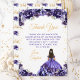 Den här eleganten och det glamorösa Quinceañera-kortet har en vacker prinsessa med mörk hår i en mörk lila boll gown. Texten kombinerar handskript och modernt sans serif typsnitt för ett klassligt och sofistikerat utseende. Blommigten och guld-konetti skapar perfekten blandning av rustik och chic. Grafik efter www.etsy.com/uk/shop/SunflowerDayLove