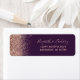 Den lämnat kant i eleganten har en modern bröllop-returadressetikett som har en ro faux-glitter-design i guld. Med anpassadet kombineras handskrift, rityta och kursivt typsnitt i blek ro färgad mot bakgrund av mörkens lila.