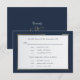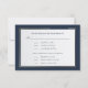 Detta marin skript på vit med en guld och marinblå kant är ett elegant RSVP-kort och menyvalskort. Baksidan har en marin bakgrund med era namn och ett guld et-tecken. Kan användas för bröllop, förnyelse av löften eller årsdagar