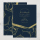 Mörk marinblå och guldmarmor chic modern bröllopsk inbjudningar