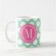 Mörk Mint & Monogrammed Pink| stor polka dots Kaffemugg