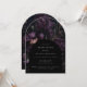 Fall i kärlek med att fira din gotiska möhippa eller Halloween-möhippa med denna mörk, gotisk och romantisk inbjudningskort för möhippan i modern båge, med en bukett av lila blommor i stil på gamla dutch-mästare, mörk och moody på svart bakgrund. De bakåtfunktioner som matchar teckningar. Använda verktyg och klicka på "anpassa ytterligare" om du vill redigera teckensnittet stil, texten storlek och placeringen av bilder.