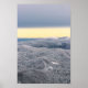 Mörk molnar soligt himlar och snöskog under vinter poster