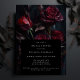 Fall i kärlek med att fira din möhippa med den här mörken, gotisk inspirerad och romantisk inbjudningskort för möhippan med ett digitalt verk av en bouquet röd ros i stil i gamla dutch-mästare, mörk och moody på svart bakgrund. Baksidan har en andra bild med mer röd ros. Använda verktyg och klicka på "anpassa ytterligare" om du vill redigera teckensnittet stil, texten storlek och placering av bilder.