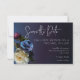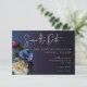 Mörk Moody Blue Lavender Blommigt Modern Bröllop Spara Datumet
