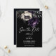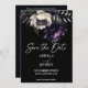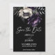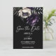 Mörk moody boho elegant gothet spara den ändringsbara mallinbjudan omedelbart digitalhämtning, svarta lilor på mörkens bakgrund spara datuminbjudan och OSA QR-kod längst bak
