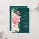 Den här mörken med elegant moody smarald grönt och mörken för blommigt med rosorna bröllopsinbjudningar har moody -blommor, grönmani, vackra handskrivet rosa-manusmanusjus på snyggt och rik smaragdbakgrund. Den här inbjudan är perfekt för paret att ha bröllop på en romantisk, formell, elegant, modern, chic, sofistikerad, trendig, trädgårdsäsong eller bröllop-plats utomhus.