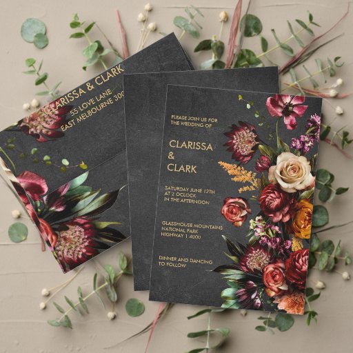 Mörk Moody fetstil Vild blomma Bröllop Inbjudningar