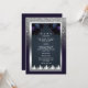 Blåa Blommigtar för mörk Moody Glitter-flottan, menyinbjudan. Mörk och dramatisk. Våra inbjudningar till marinblått, silver och lila blommigt tillför en aning mysterium och magi till er speciella dag