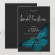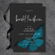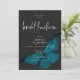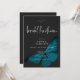 Den här möhippans lunchinbjudan innehåller en mörk, ett moody tema som är enkelt, men ändå enastående. En svart bakgrund i mörk är perfektens arbetsyta för en enda tealblått matt, dess spridning i vingar för flygning. Unik och elegant, den här utformningen kan användas för vilken säsong som helst. Skapat av Farmhouse Press.