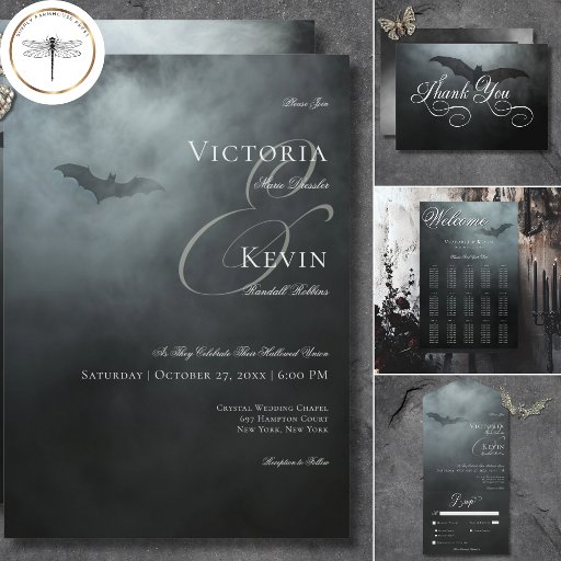 Dark Moody Midnight Bat & Fog WeddingDesignad av Kathe Santillo