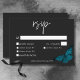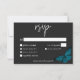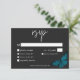 Svarskortet i bröllop med alternativ för middagsval har en mörk, ett moody tema som är enkelt men ändå enastående. En svart bakgrund i mörk är perfektens arbetsyta för en enda tealblått matt, dess spridning i vingar för flygning. Unik och elegant, den här utformningen kan användas för vilken säsong som helst. Skapat av Farmhouse Press.