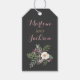 Vår vintage boho blommigt bröllop monogram tackar dig för att du föredrar taggar har en moody blommigt arrangemang av romantiskt rosor, peony och anemonblommor, grönt och rustiskt bohemiskt ludd i rik skuggor av dammig ro, mauv rosa, kassis, gräddvit, moss grönt, grått och guld på mörk/svart bakgrund grått. Ett dramatiskt och drömt färg-program för ditt fall eller vinterbröllop. Anpassa det vackra monogrammet för anpassningsbar och tack för din elegant-rustiska bröllopsdag.