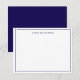 Personlig platt notkortsidé i mörk navyblå och vit. Inkluderar namn, kant och solid blå baksida.