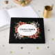 Den här gästen i elegant bröllop har en anpassade som gör att du kan lägga till parets namn och bröllop-datum för en verkligt personlig beröring. Täcket visar en dramatisk svart bakgrund som accentueras av en vacker blommigt arrangemang med korallets, vitets och gröntens nyans. Blommorna runt ett ovalt ram där namn och datum visas med ett klassiskt, vintage-inspirerat typsnitt, ge det ett romantiskt men djärvt utseende. Perfekt för ett höst- eller gettemat bröllop fångar gästen bok ett sofistikerat stil och gör för en minnesvärd keepsaké som man kan vårda långt efter bröllopsdagen. Gäster kan lämna hjärtliga budskap inuti, skapar det ett underbart tillägg till din speciella dag.