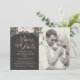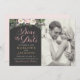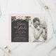 Vår vintage Bho blommigt bröllop-foto sparar datumkortet med en moody blommigt arrangemang av romantiskt rosor, peony och anemonblommor, grön och rustisk bohemisk ludd i rik skuggor av dammig ro, mauv rosa, kassis, gräddvit, moss grönt, grått och guld på mörk/svart bakgrund grått. Ett dramatiskt och drömt färg-program för ditt fall eller vinterbröllop. Anpassa fotot och den vackra anpassningsbarna till elegantens roliga bröllopsdag.