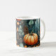 En mörk pumpa mönster mugg med en moody höstdesign med fallande löv. Perfekt för pumpkryddig latte älskare eller som söt säsong-gåva.
